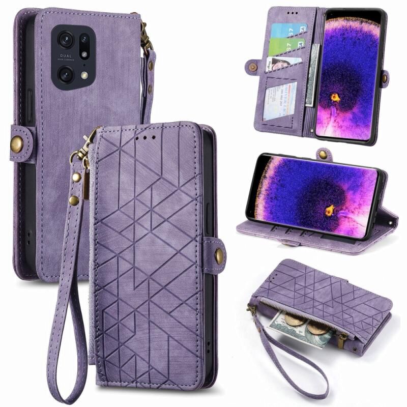 Για OPPO Βρείτε X5 Pro γεωμετρική φερμουάρ πορτοφόλι πλευρά πόρπη δερμάτινη θήκη τηλεφώνου (Μωβ)