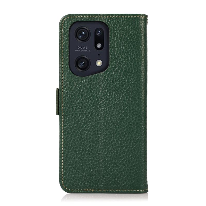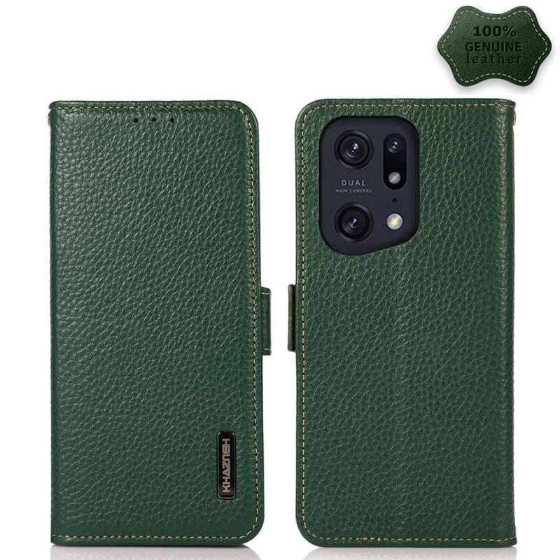 Θήκη τηλεφώνου OPPO Find X5 Pro KHAZNEH με μαγνητικό κλείσιμο, γνήσιο δέρμα Litchi και προστασία RFID (πράσινο)