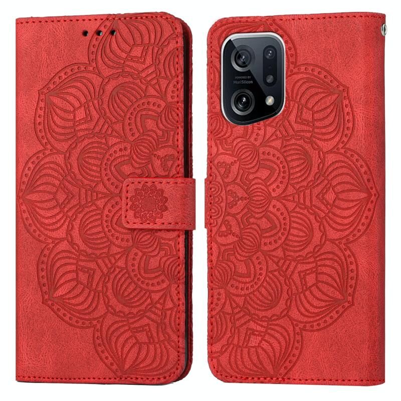 Για OPPO Βρείτε X5 Pro Mandala ανάγλυφο Flip υπόθεση τηλεφώνου δέρμα (κόκκινο)
