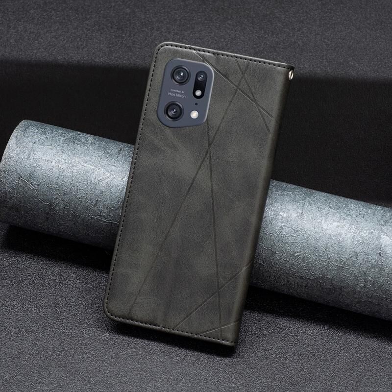 Για OPPO Find X5 Pro Prismatic Invisible Μαγνητική δερμάτινη θήκη τηλεφώνου (Μαύρο)