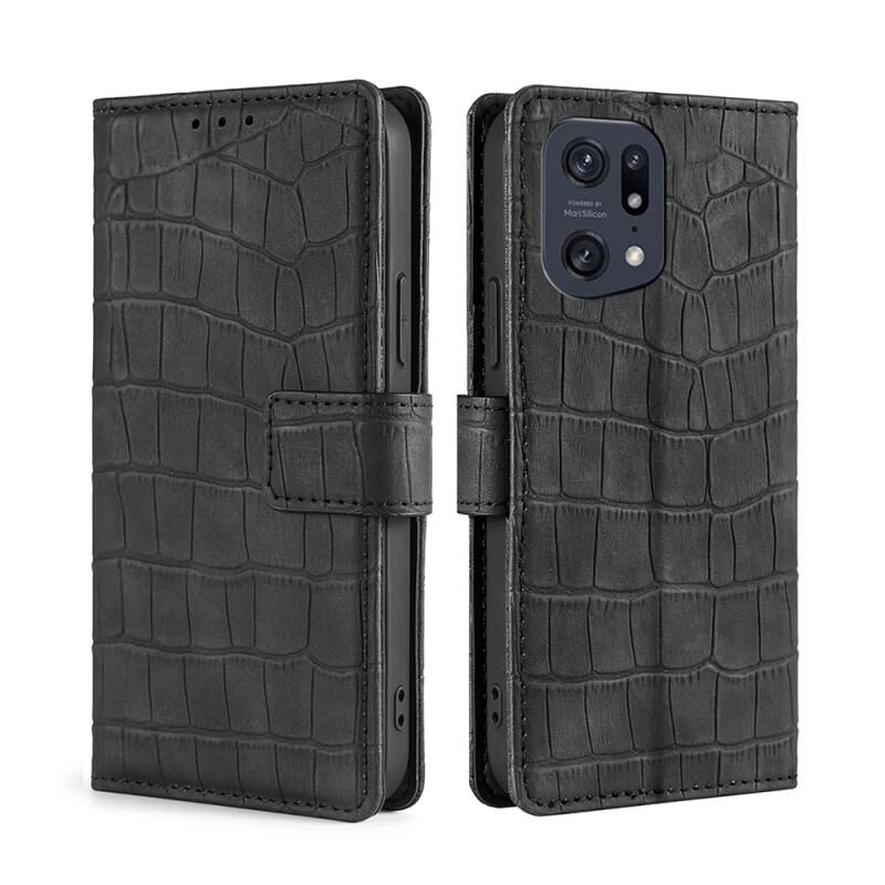Θήκη τηλεφώνου από δέρμα με μαγνητικό κούμπωμα και υφή κροκόδειλου για OPPO Find X5 Pro (Μαύρο)