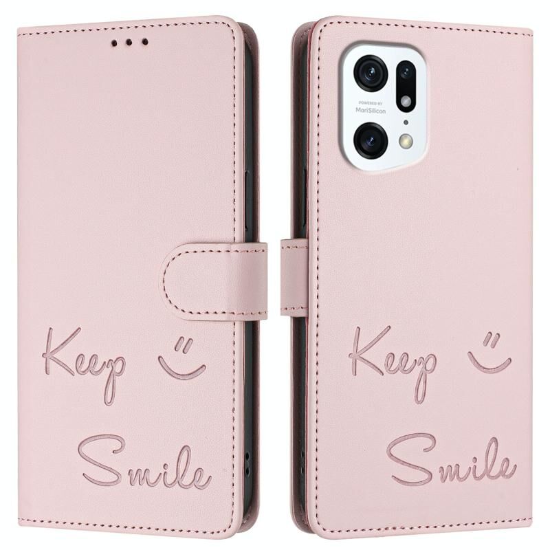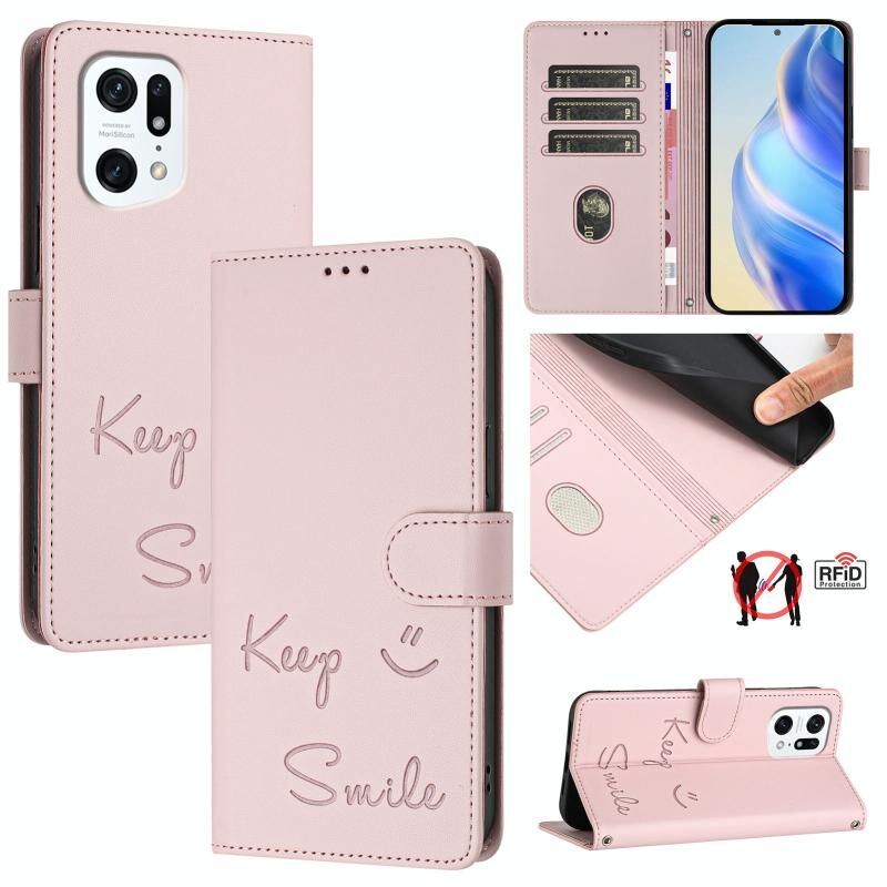 Για OPPO Βρείτε X5 Pro Χαμόγελο ανάγλυφο RFID δερμάτινη θήκη τηλεφώνου (ρόζ)