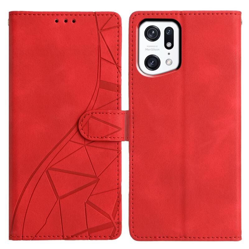 Θήκη τηλεφώνου OPPO Find X5 Pro με ανάγλυφο δέρμα σε σχήμα τριγώνων (Κόκκινο)