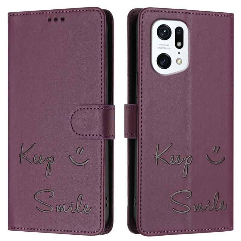 Για OPPO Βρείτε X5 Χαμόγελο ανάγλυφο RFID δερμάτινη θήκη τηλεφώνου (Violet)