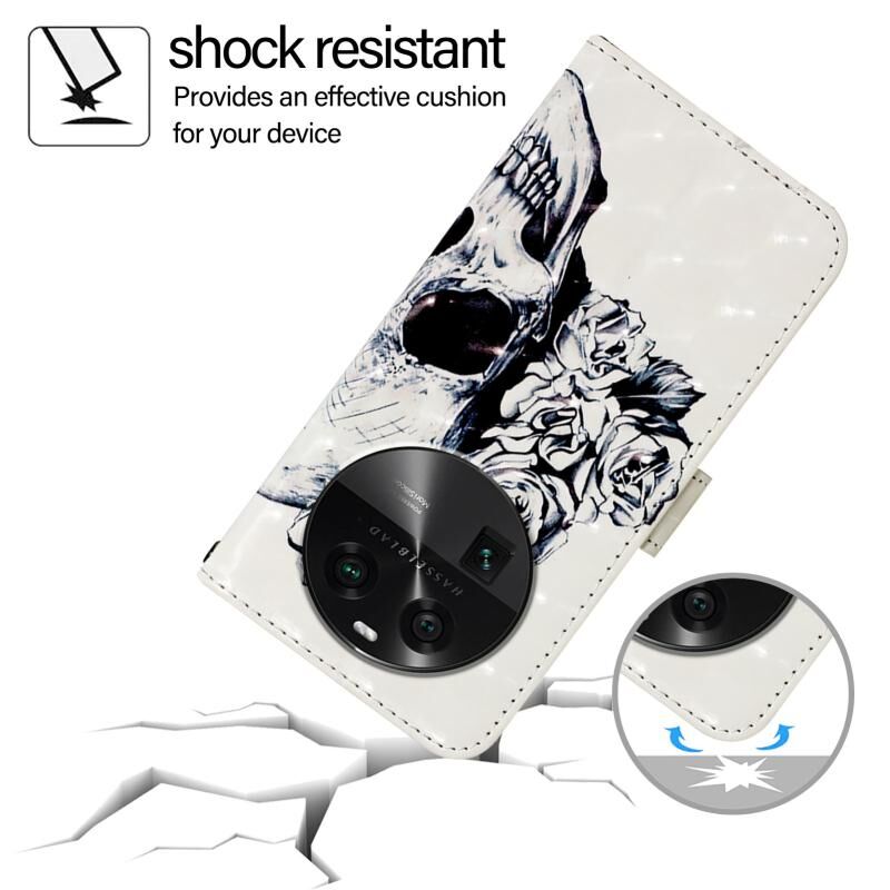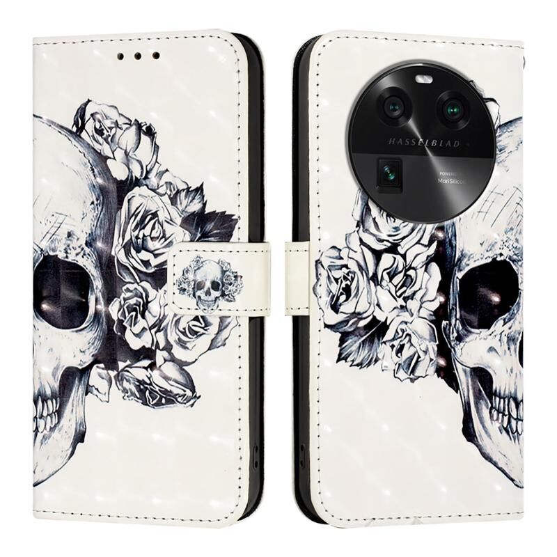 Θήκη τηλεφώνου από δέρμα με οριζόντια αναδίπλωση και τρισδιάστατη βαφή για OPPO Find X6 (Κρανίο)