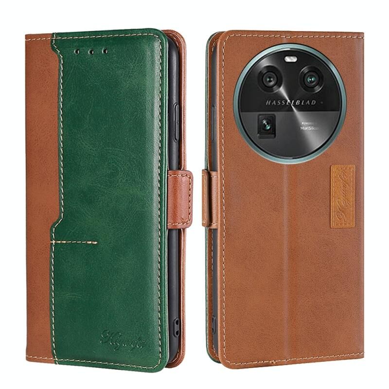 Για OPPO Βρείτε X6 5G αντίθεση χρώμα πλευρά πόρπη δερμάτινη θήκη τηλεφώνου υπόθεση (ανοιχτό καφέ + πράσινο)