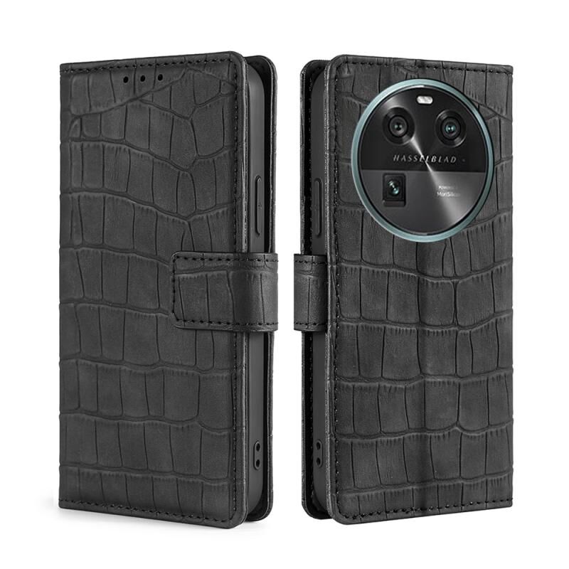 Θήκη τηλεφώνου από δέρμα με μαγνητικό κούμπωμα και υφή κροκόδειλου για OPPO Find X6 5G (Μαύρο)