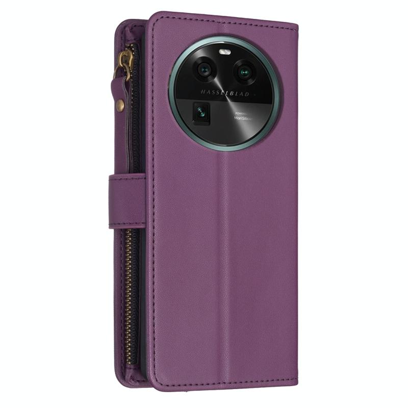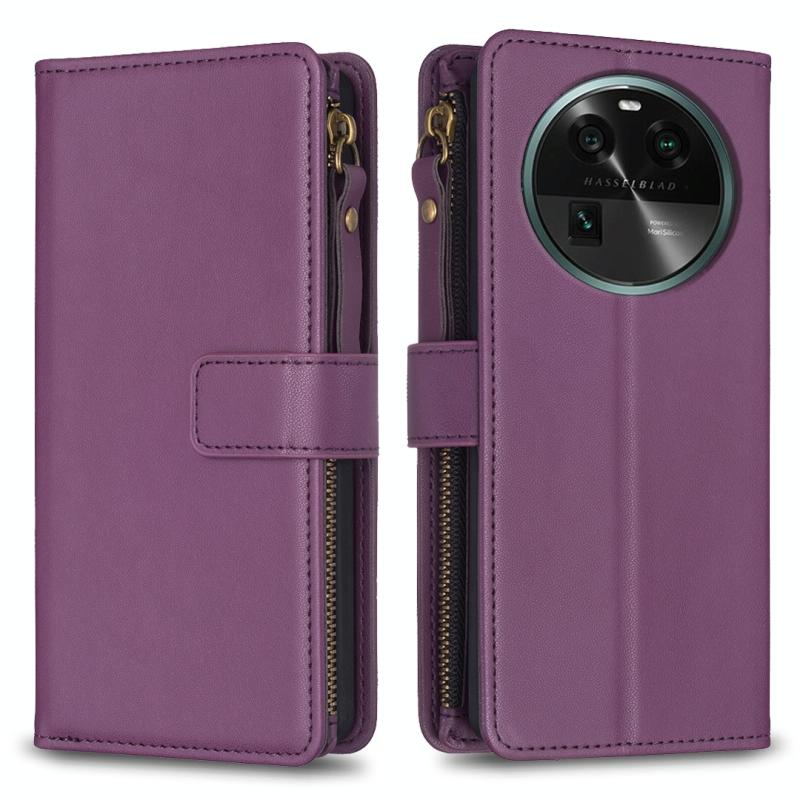 Για OPPO Find X6 Θήκη Τηλεφώνου Δερμάτινη Flip με Φερμουάρ και 9 Θήκες Καρτών (Σκούρο μωβ)