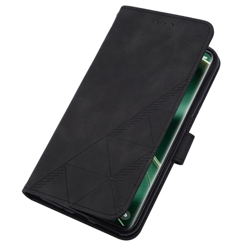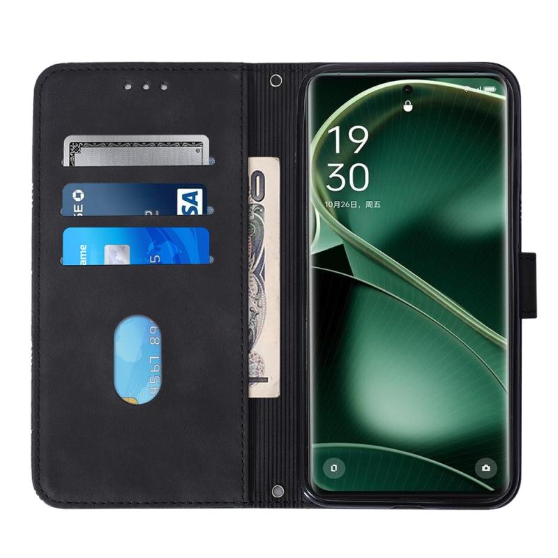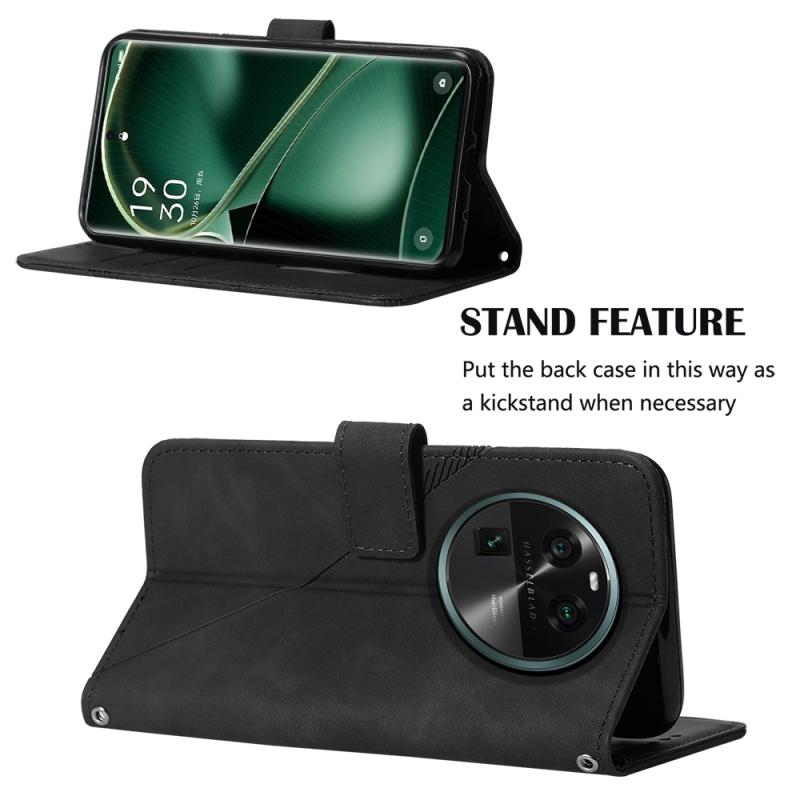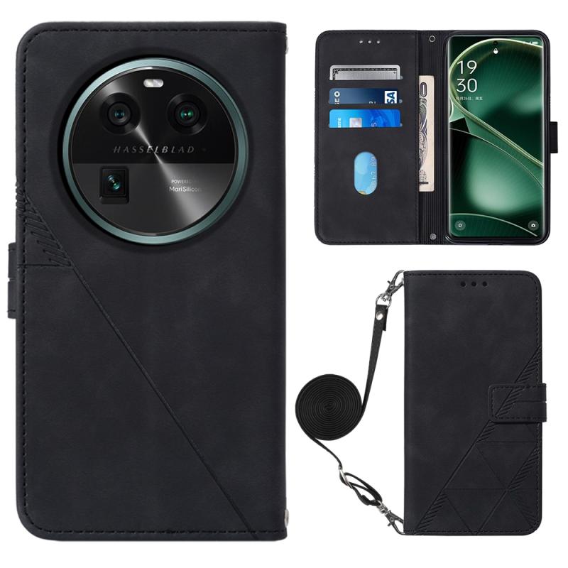 Θήκη τηλεφώνου από δέρμα με ανάγλυφο 3D, τύπου flip, για OPPO Find X6, με λουρί (Μαύρο)
