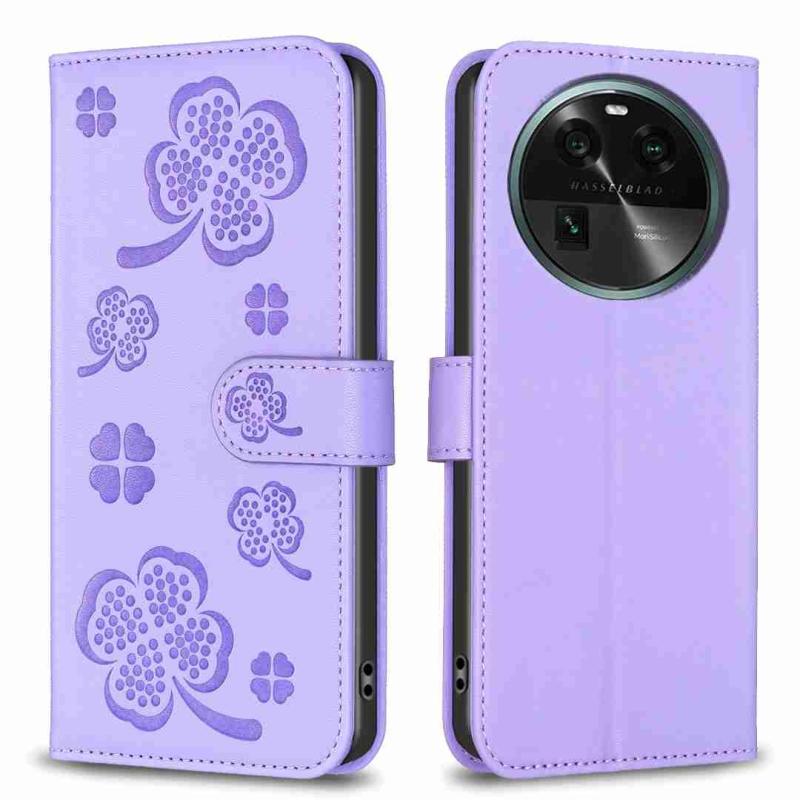 For OPPO Find X6 Four-leaf Embossed Leather Phone Case(Purple)