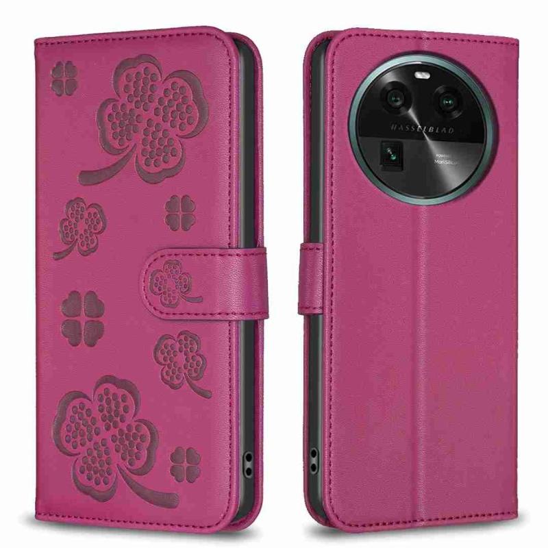 For OPPO Find X6 Four-leaf Embossed Leather Phone Case(Rose Red)