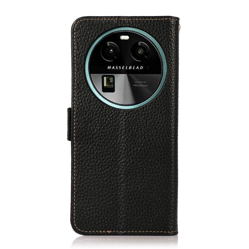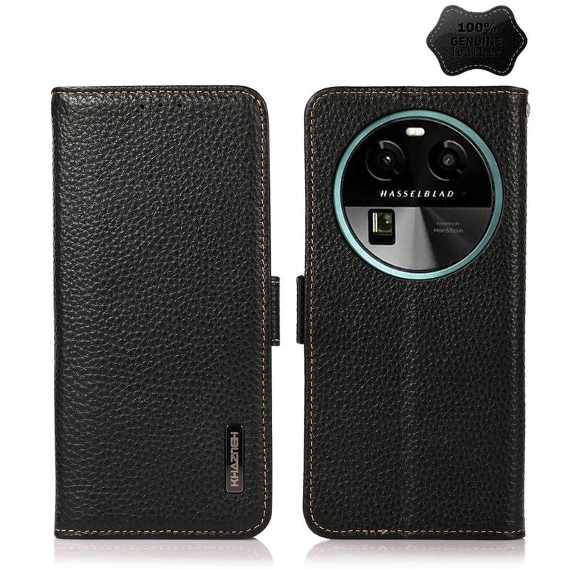 Θήκη τηλεφώνου OPPO Find X6 KHAZNEH με μαγνητικό κλείσιμο, γνήσιο δέρμα Litchi και προστασία RFID (Μαύρο)