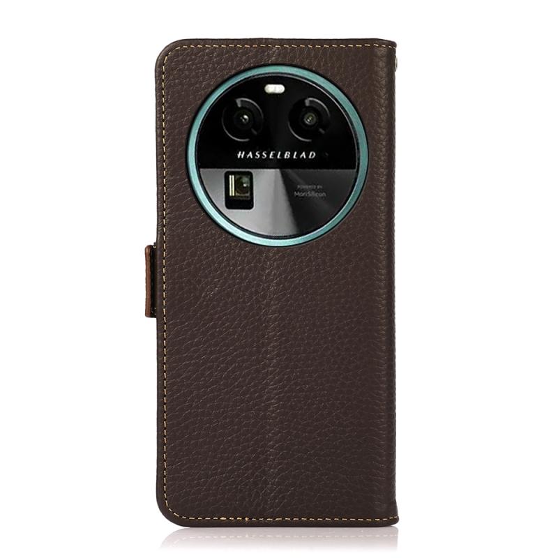 Θήκη τηλεφώνου OPPO Find X6 KHAZNEH με μαγνητικό κλείσιμο, γνήσιο δέρμα Litchi, RFID (Καφέ)