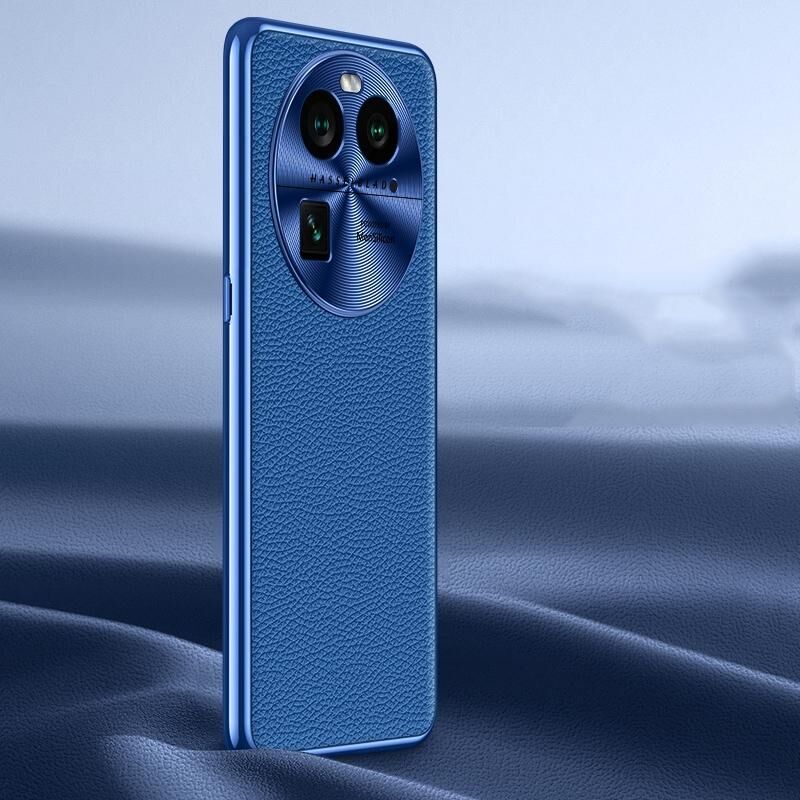 Θήκη τηλεφώνου από γνήσιο δέρμα με υφή λitchi για OPPO Find X6 (Μπλε)