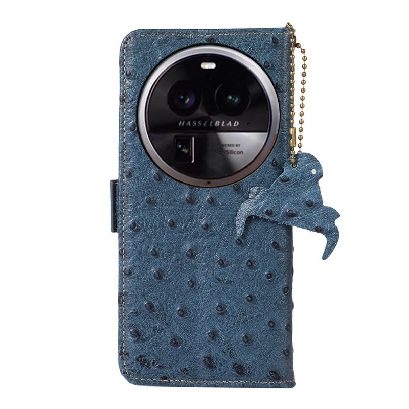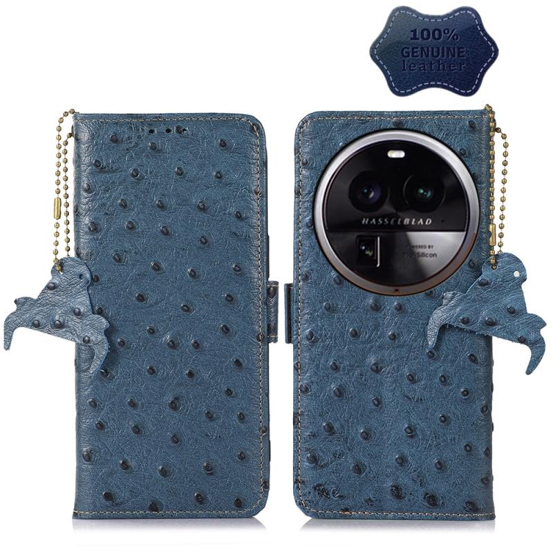 Θήκη τηλεφώνου OPPO Find X6 με γνήσιο δέρμα σε μοτίβο στρουθοκάμηλου και προστασία RFID (Μπλε)