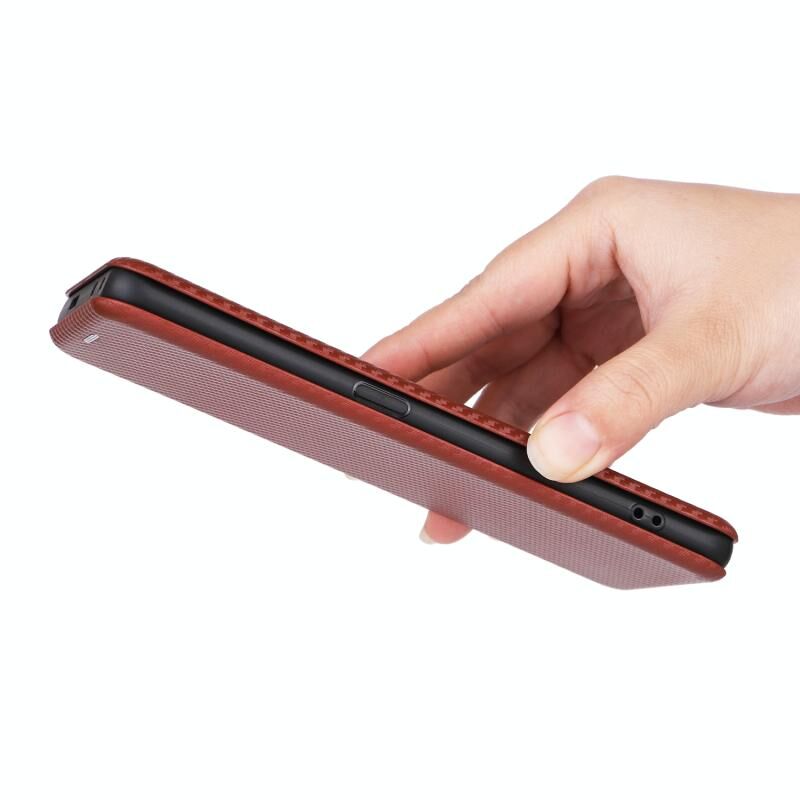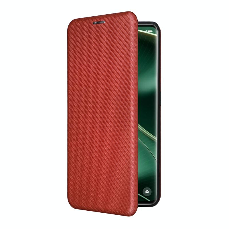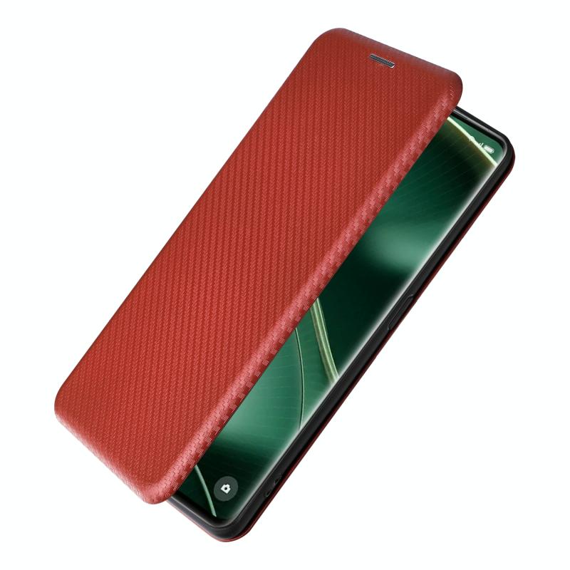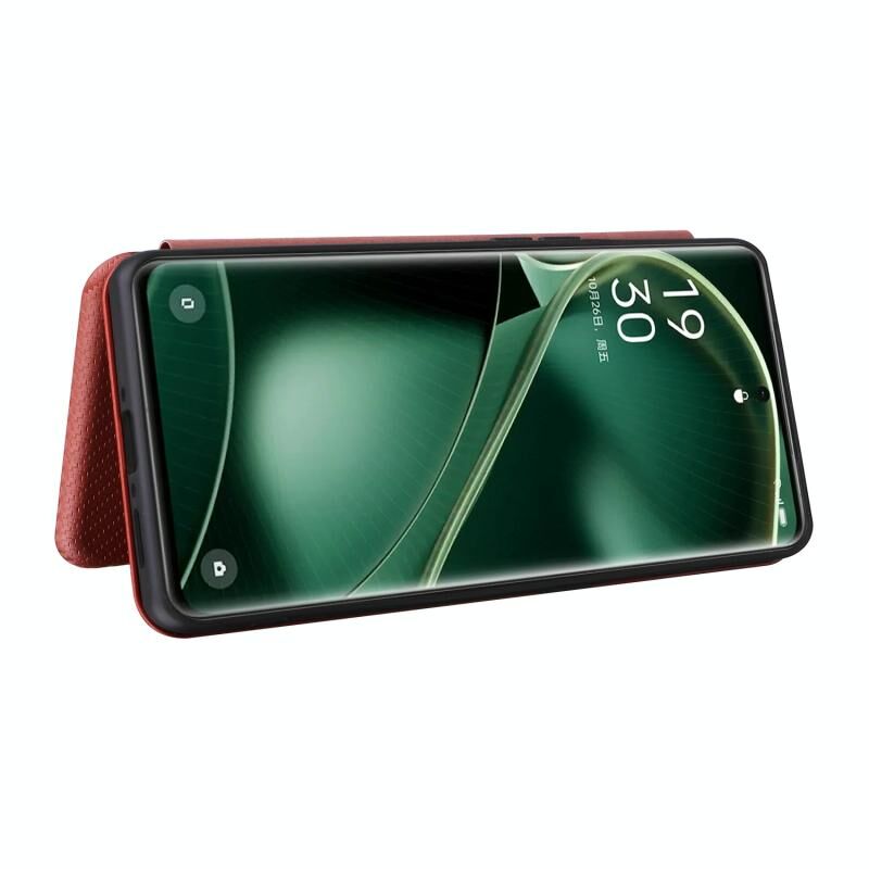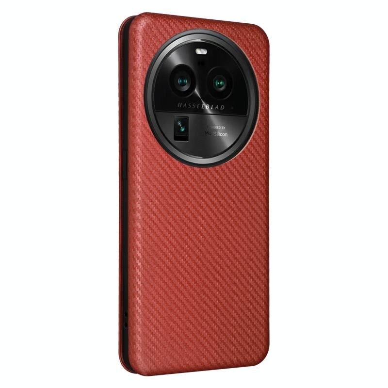 Θήκη τηλεφώνου από δέρμα με αναδιπλούμενο σχέδιο για OPPO Find X6 Pro 5G, υφή ανθρακονημάτων (Καφέ)