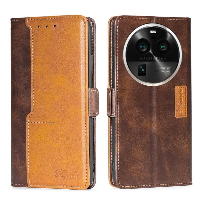 Για OPPO Βρείτε X6 Pro 5G αντίθεση χρώμα πλευρά πόρπη δερμάτινη θήκη τηλεφώνου (Σκούρο καφέ και χρυσό)