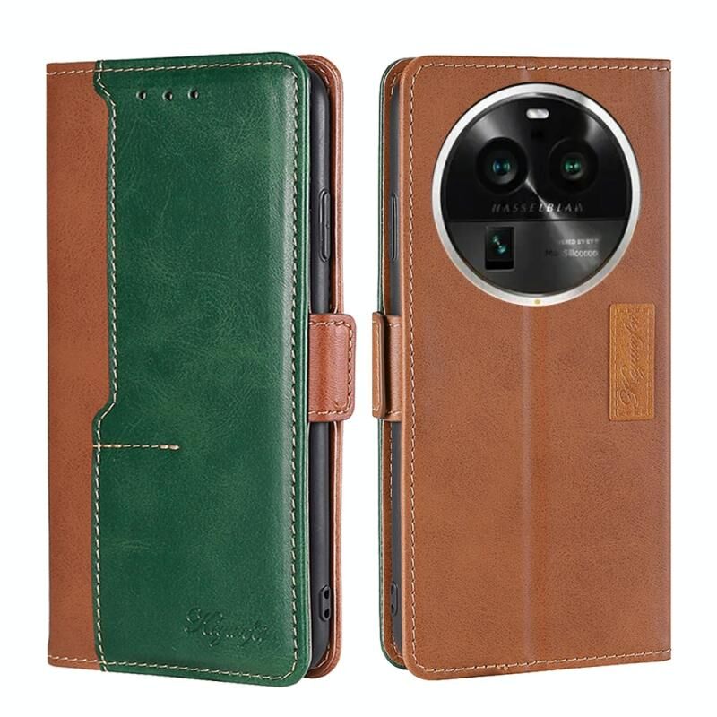 Για OPPO Βρείτε X6 Pro 5G αντίθεση χρώμα πλευρά πόρπη δερμάτινη θήκη τηλεφώνου (ανοιχτό καφέ + πράσινο)