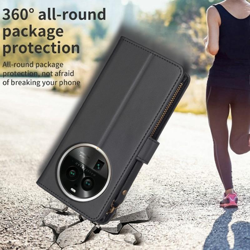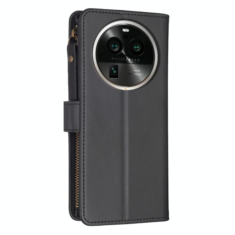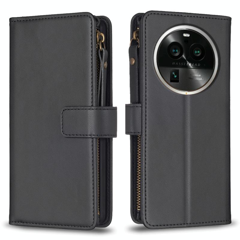 Για OPPO Find X6 Pro Θήκη Τηλεφώνου Δερμάτινη Flip με Φερμουάρ και 9 Θήκες Καρτών (Μαύρο)