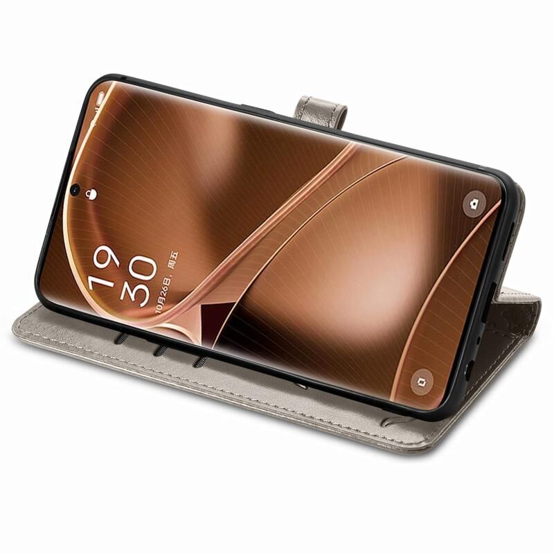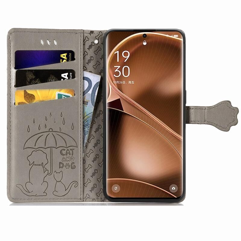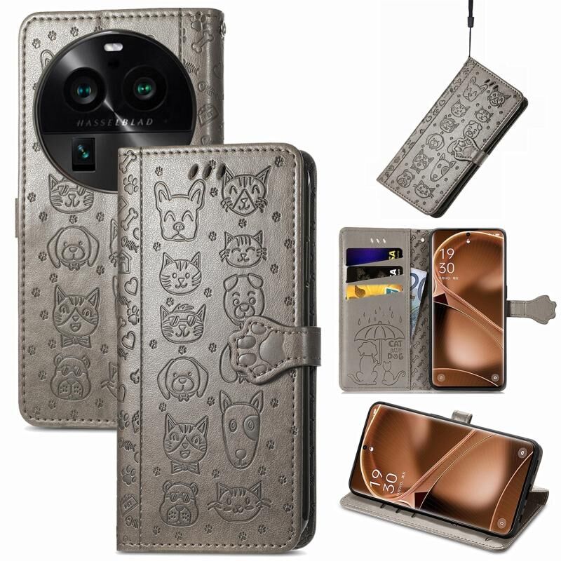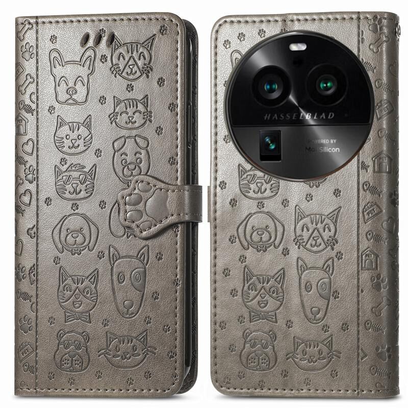 Θήκη τηλεφώνου από δέρμα με ανάγλυφο σχέδιο γάτας και σκύλου για OPPO Find X6 Pro (Γκρι)
