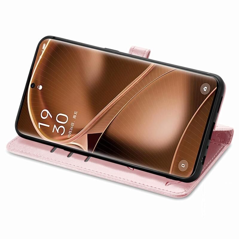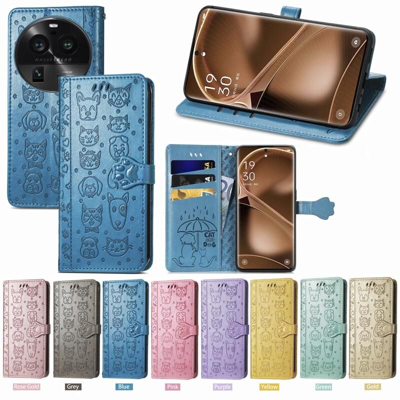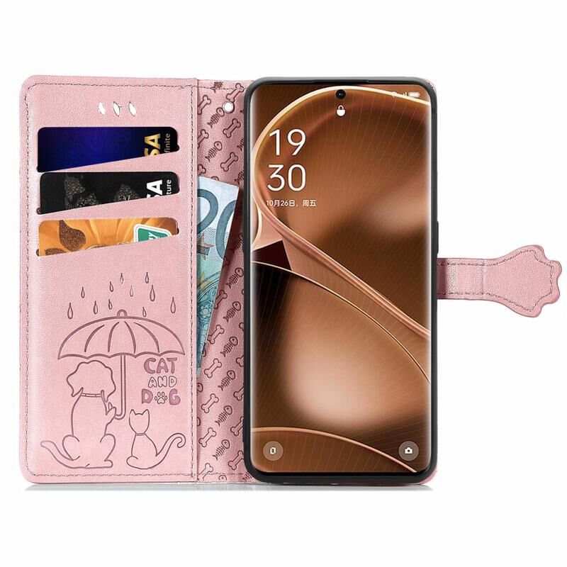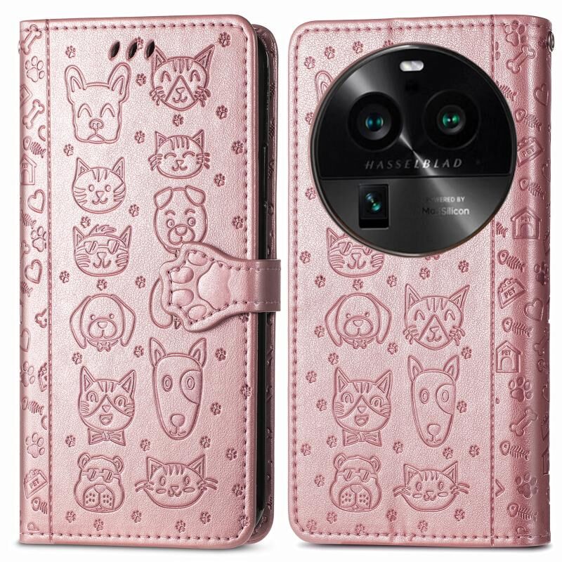 Θήκη τηλεφώνου από δέρμα με ανάγλυφο σχέδιο γάτας και σκύλου για OPPO Find X6 Pro (Ροζ χρυσός)