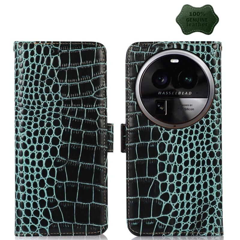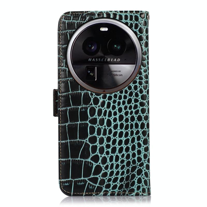 Θήκη τηλεφώνου από δέρμα αγελάδας με επικάλυψη κροκόδειλου για OPPO Find X6 Pro (πράσινο)