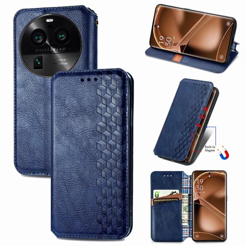Για OPPO Find X6 Pro Cubic Grid Pressed μαγνητική δερμάτινη θήκη τηλεφώνου (Μπλε)