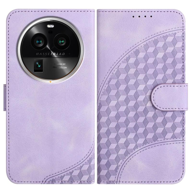 Θήκη δερμάτινη για OPPO Find X6 Pro με ανάγλυφο σχέδιο κεφαλής ελέφαντα και κορδόνι (Ανοιχτό Μωβ)