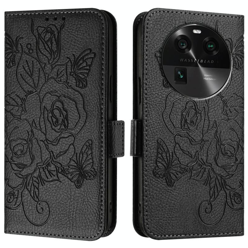 Για OPPO Βρείτε X6 Pro ανάγλυφο Rose RFID Anti-theft Δερμάτινη θήκη τηλεφώνου (Μαύρο)