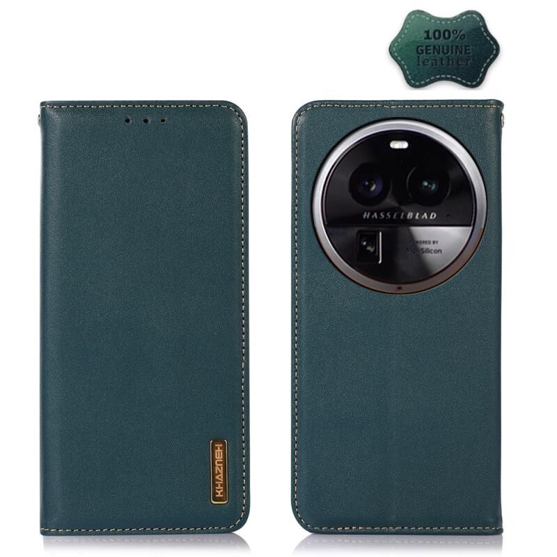 Θήκη τηλεφώνου από δέρμα αγελάδας Nappa Top Layer για OPPO Find X6 Pro KHAZNEH (πράσινο)