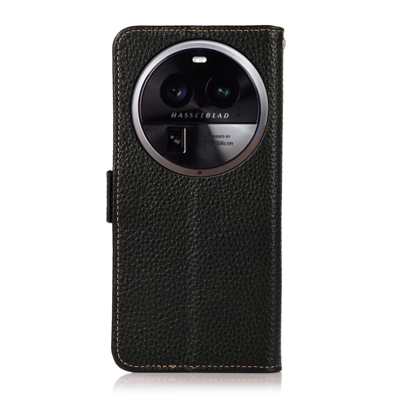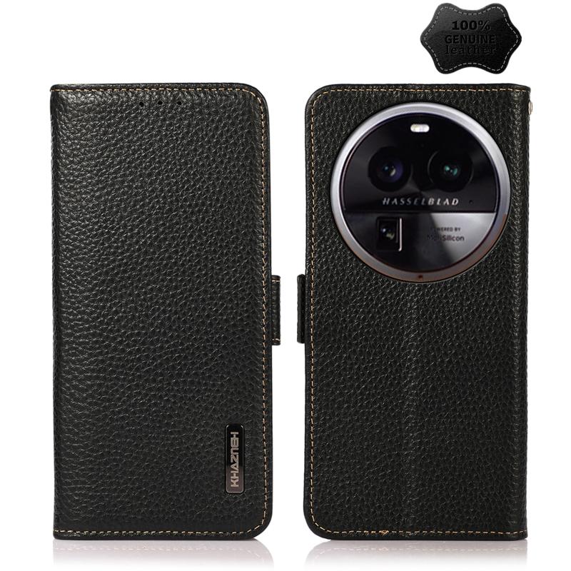 Θήκη τηλεφώνου OPPO Find X6 Pro KHAZNEH με μαγνητικό κλείσιμο, γνήσιο δέρμα Litchi και προστασία RFID (Μαύρο)