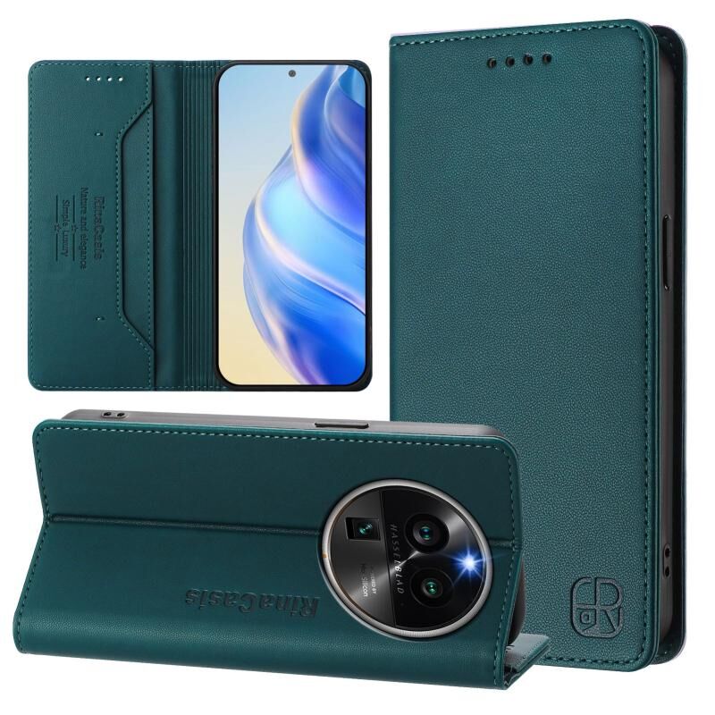 Θήκη τηλεφώνου από δέρμα με μαγνητική απορρόφηση και προστασία RFID για OPPO Find X6 Pro RC01 Διπλά Διπλωμένη (Μέντας Πράσινο)