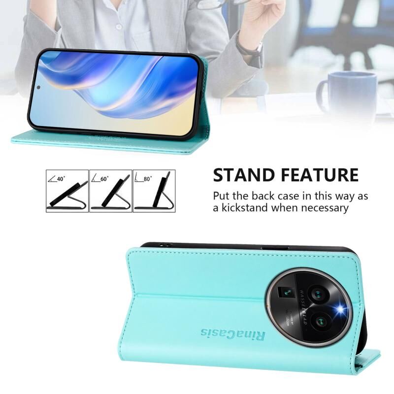 Θήκη τηλεφώνου από δέρμα με μαγνητική απορρόφηση και προστασία RFID για OPPO Find X6 Pro RC01 Διπλά Διπλωμένη (Μέντας Πράσινο)