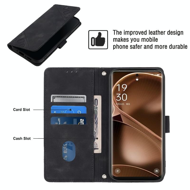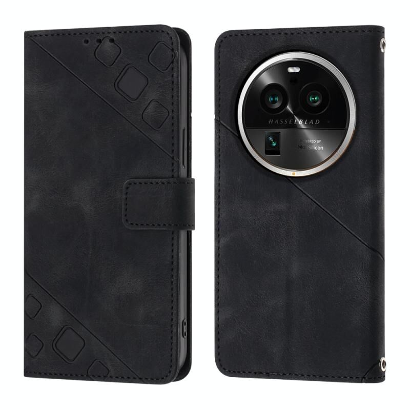 Για OPPO Find X6 Pro Skin-feel ανάγλυφη δερμάτινη θήκη τηλεφώνου (Μαύρο)