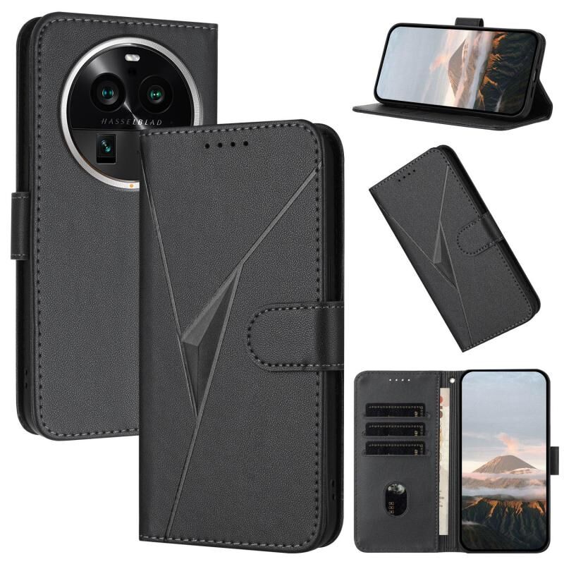 Θήκη τηλεφώνου από δέρμα με μαγνητικό κούμπωμα σε σχήμα τριγώνου για OPPO Find X6 Pro (Σκούρο Μωβ)