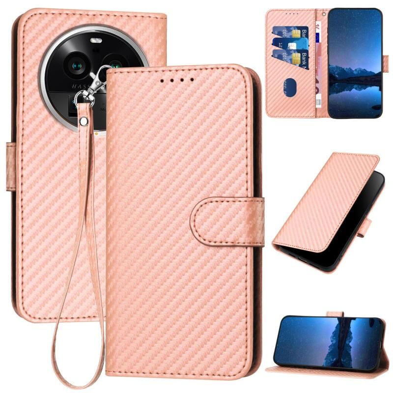 Θήκη τηλεφώνου για OPPO Find X6 Pro YX0070 από ανθρακονήματα και δέρμα με αγκράφα και κορδόνι (Κόκκινο)
