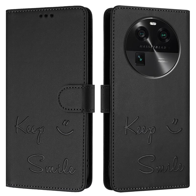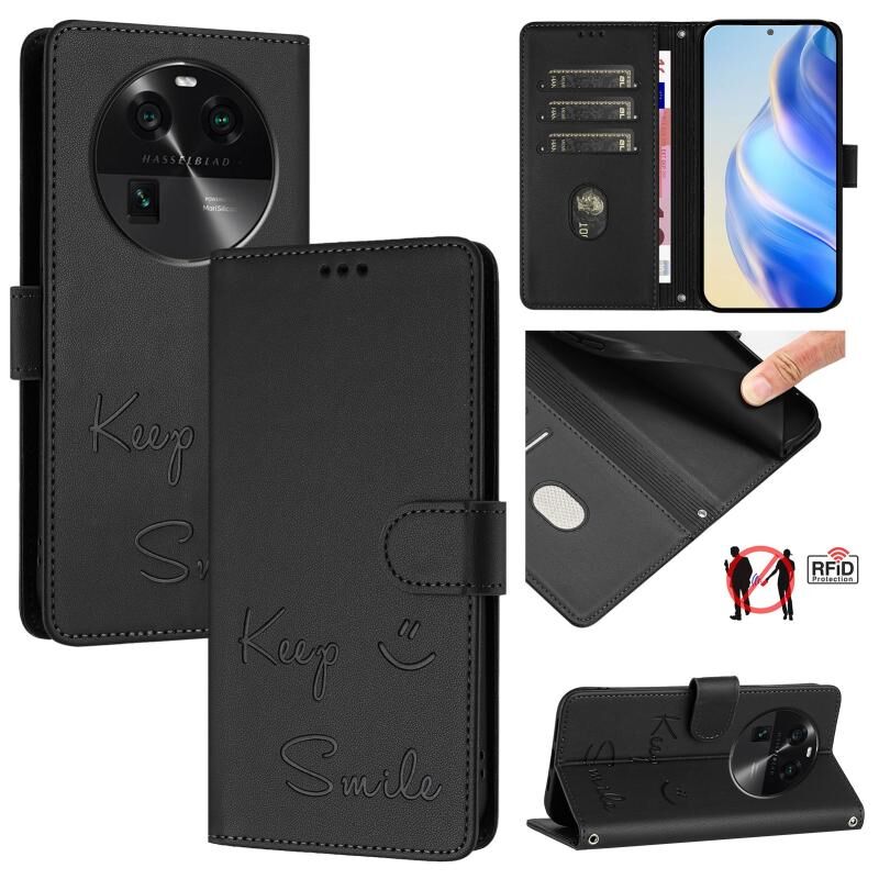 Για OPPO Βρείτε X6 Χαμόγελο ανάγλυφο RFID δερμάτινη θήκη τηλεφώνου (Μαύρο)