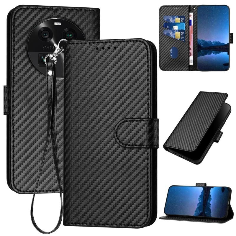 Θήκη τηλεφώνου για OPPO Find X6 YX0070 από ανθρακονήματα και δέρμα με αγκράφα και κορδόνι (Κόκκινο)