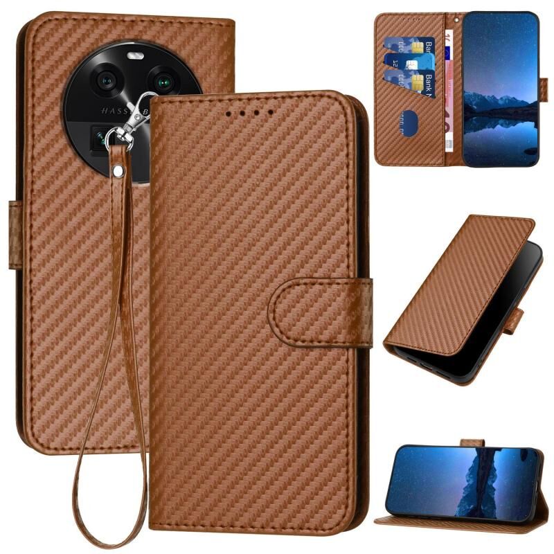 Θήκη τηλεφώνου για OPPO Find X6 YX0070 από ανθρακονήματα και δέρμα με αγκράφα και κορδόνι (Καφέ)