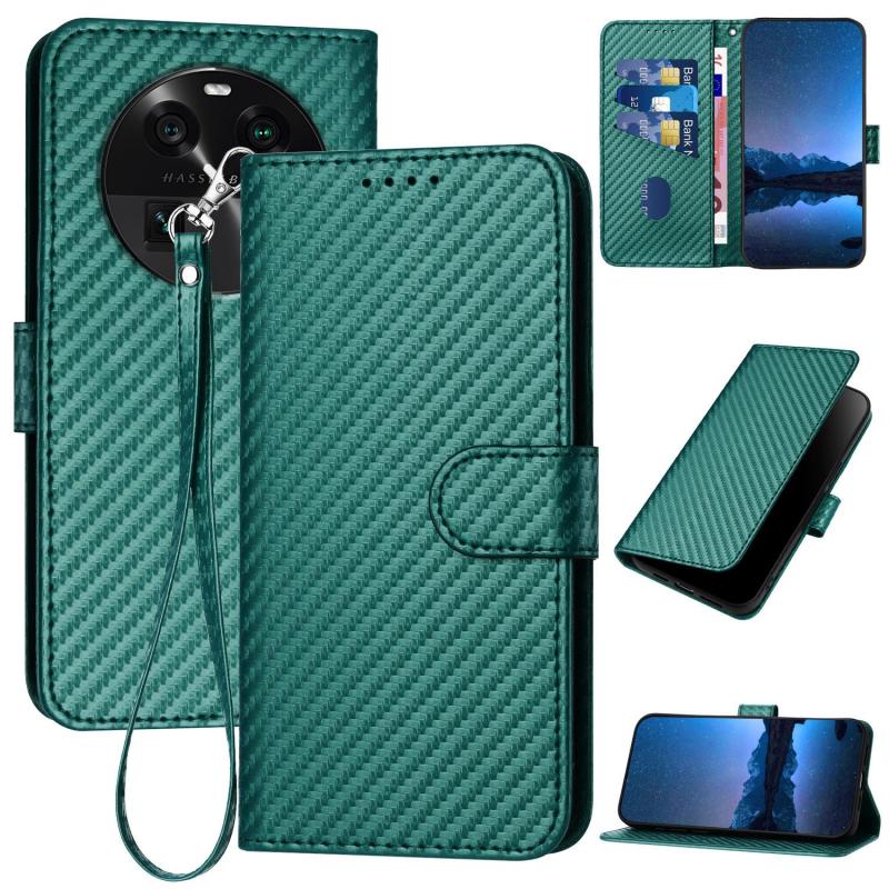 For OPPO Find X6 YX0070 Carbon Fiber Buckle Leather Phone Case with Lanyard(Dark Green)
