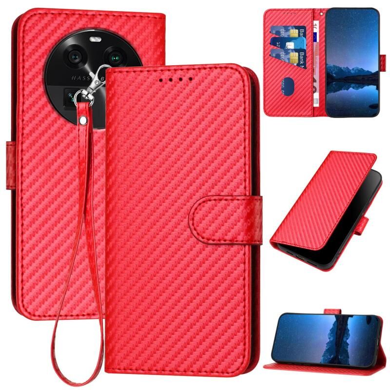 Θήκη τηλεφώνου για OPPO Find X6 YX0070 από ανθρακονήματα και δέρμα με αγκράφα και κορδόνι (Κόκκινο)