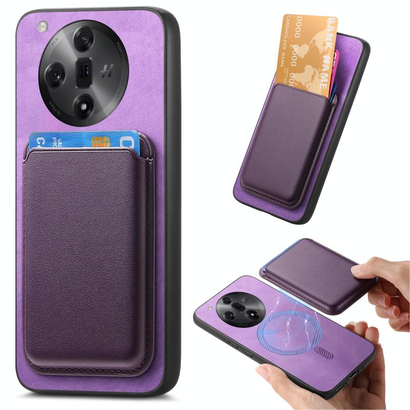 Για OPPO Find X7 5G Θήκη Κάρτας MagSafe PU Back Cover (Μωβ)