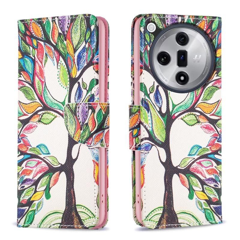 Θήκη τηλεφώνου από δέρμα με έγχρωμο σχέδιο για OPPO Find X7 (Δέντρο της Ζωής)