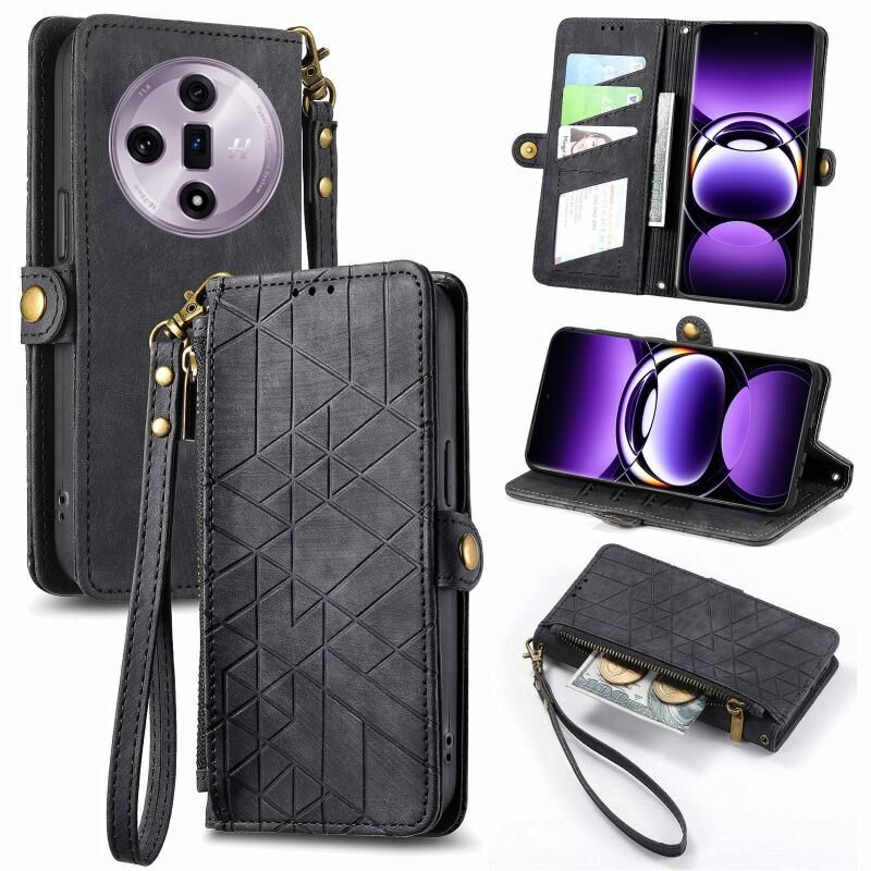 Για OPPO Βρείτε X7 γεωμετρική φερμουάρ πορτοφόλι πλευρά πόρπη δερμάτινη θήκη τηλεφώνου (μαύρο)