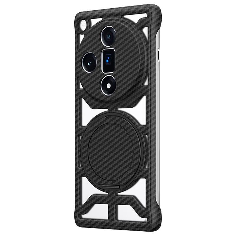 For OPPO Find X7 Hollow Carbon Fiber Rotating Bracket MagSafe Phone Case(Black)
