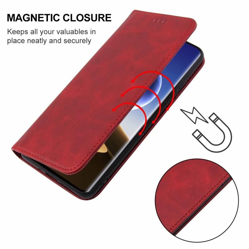 Θήκη τηλεφώνου από δέρμα με μαγνητικό κλείσιμο για OPPO Find X7 (Κόκκινο)