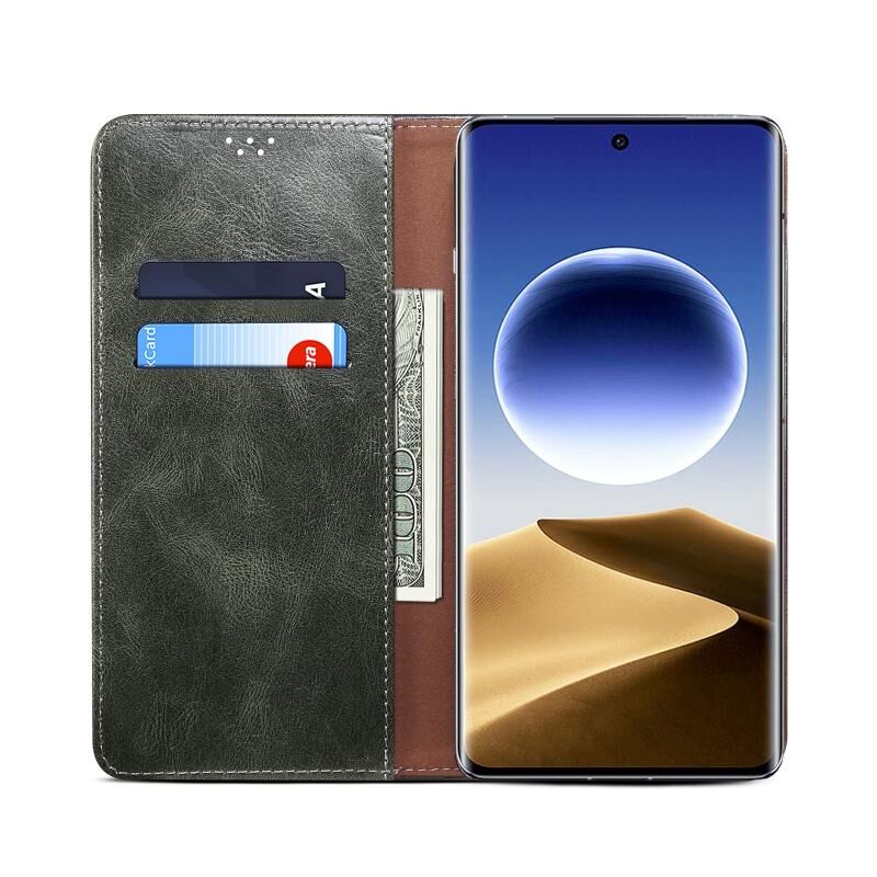 Θήκη τηλεφώνου από δέρμα με υφή λαδιού και τρελής ιπποειδούς για OPPO Find X7 Pro/Find X7 Ultra (Μαύρο)