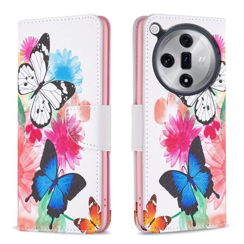 Θήκη τηλεφώνου από δέρμα με έγχρωμο σχέδιο για OPPO Find X7 Ultra (Κόκκινο)