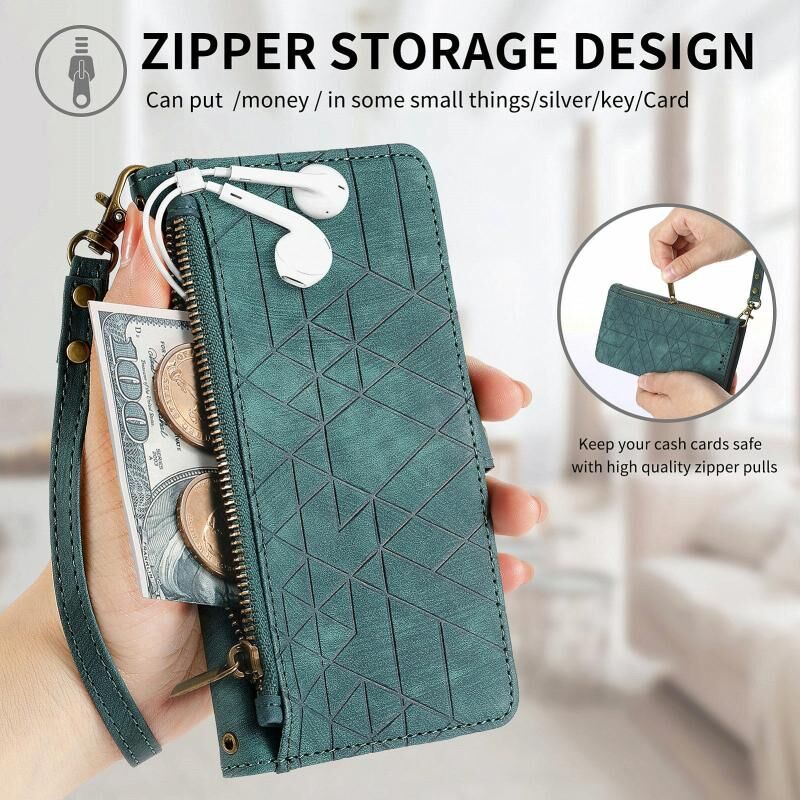 Για OPPO Βρείτε X7 Ultra γεωμετρική φερμουάρ πορτοφόλι πλευρά πόρπη δερμάτινη θήκη τηλεφώνου (πράσινο)