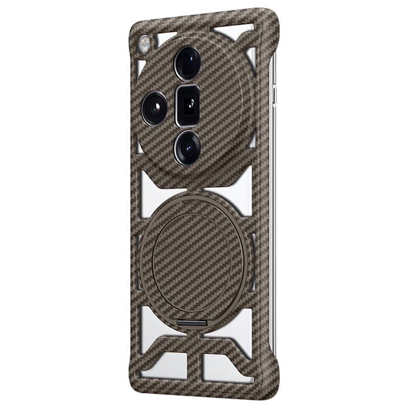 For OPPO Find X7 Ultra Hollow Carbon Fiber Rotating Bracket MagSafe Phone Case(Gold)